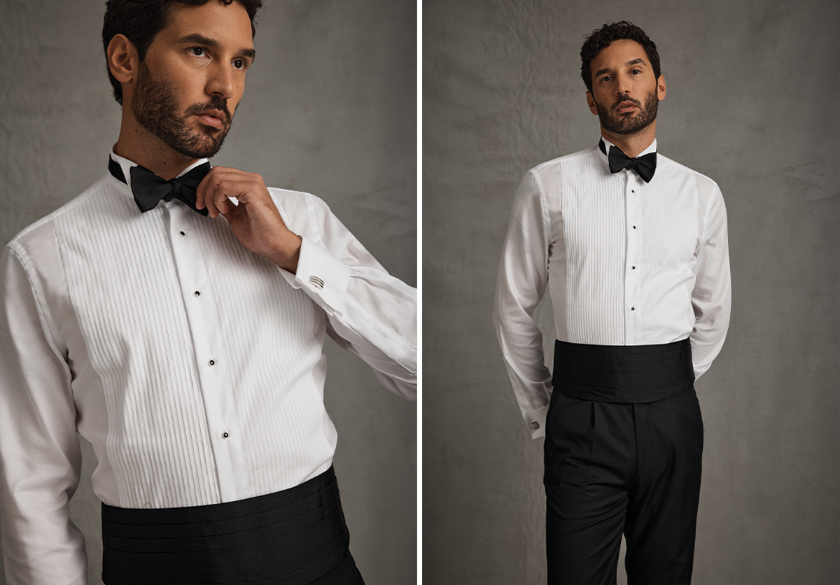 Add contrast buttons or studs, embroider your initials on the cuff, or customise the bib style to match your lapel (pleats for shawl, pique for peak).