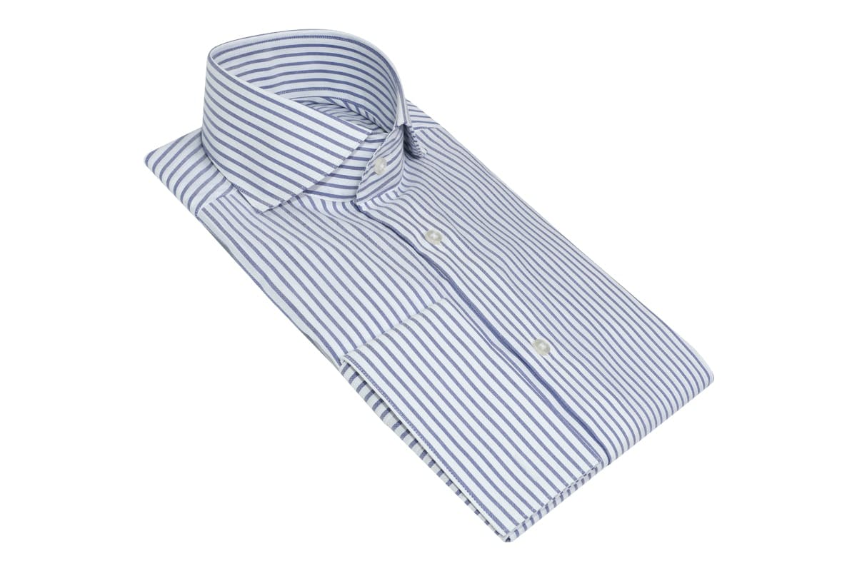 A classic english look, the collar cuts back sharply towards the shoulder of the shirt.