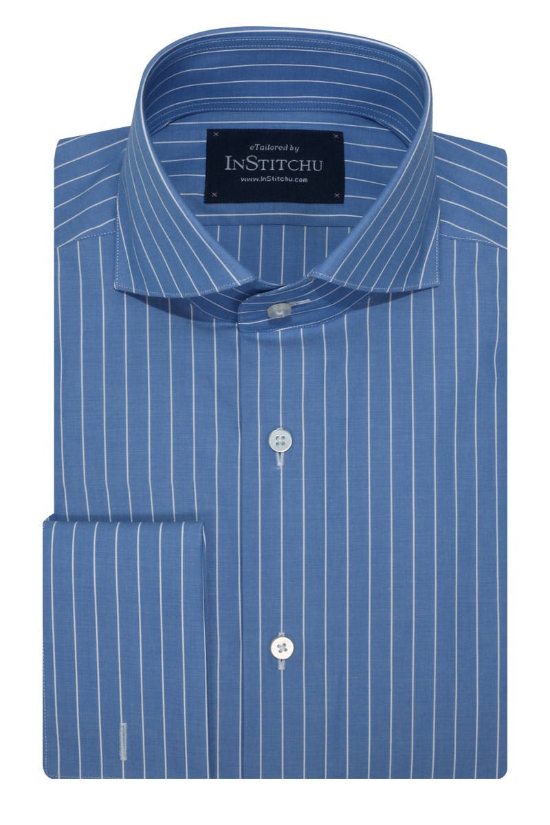 This Powder Blue Single Smart Stripe fabric is made of 100% Cotton. A versatile fabric that is breathable and stretch-free, the striped fabric creates a flattering, elongating effect.