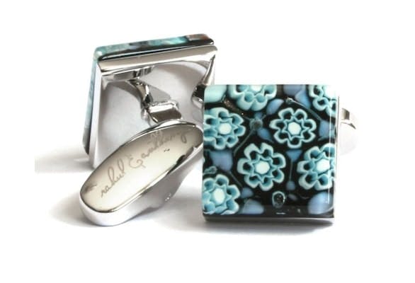 Sea-blue millefiori floated against a black canvas.