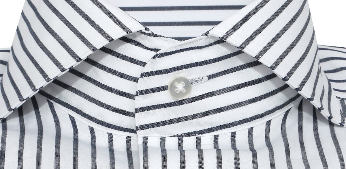 A classic english look, the collar cuts back sharply towards the shoulder of the shirt.