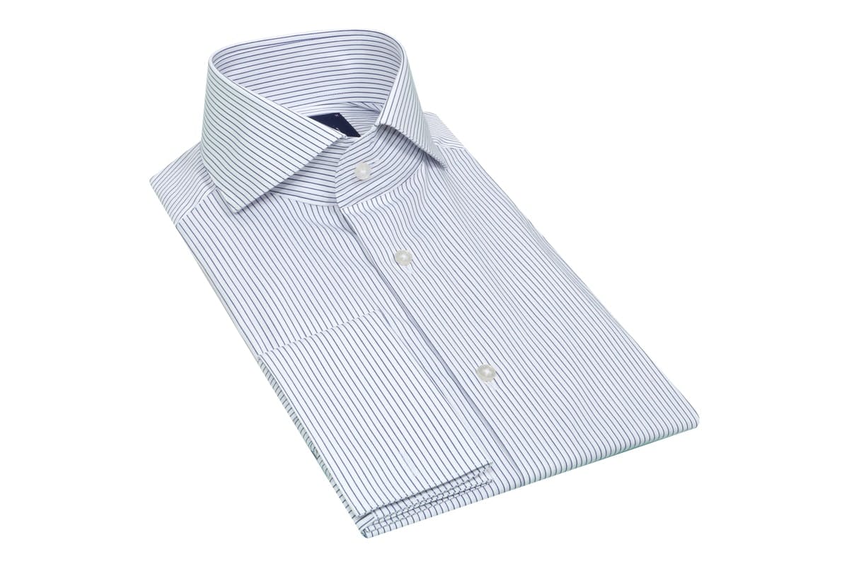 A classic english look, the collar cuts back sharply towards the shoulder of the shirt.