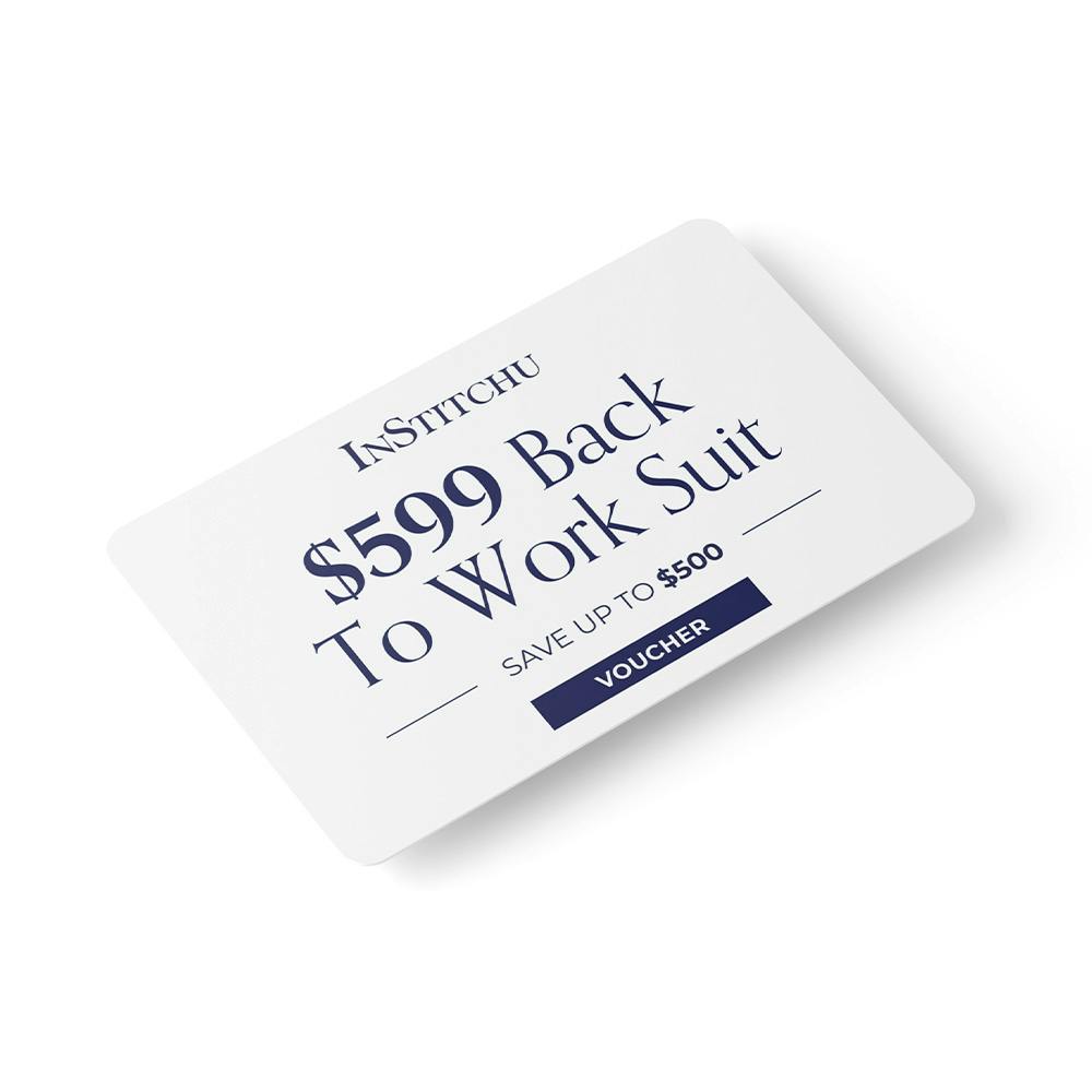 headerInclude::100% Australian Merino Wool|275gsm weight, perfect for year round|Timeless Dark Navy Twill weave::headerInclude included::1 x Custom, Tailored Suit with Fabric 18.B.23.BD* |Fully customisable: lapels, linings, buttons and more**|Complimentary alterations if required|Redeemable online or at any InStitchu Showroom::included includedSecond:: *Fabric is 100% Australian Merino Wool | **Some design details may incur an additional fee::includedSecond Terms and Conditions:The Voucher can be used to purchase items included in the InStitchu Back To Work Suit Pack only and will expire 36 months from the date of issue. Pack includes 1 x custom, tailored suit with the fabric code 18.B.23.BD. The gift card offer is purchasable online only. Offer is redeemable online and in any InStitchu showroom, optional design extras that incur an extra charge are not included in the Back to work suit pack, offer valid once per person for the duration of this promotion, cannot be used in conjunction with any other offer, InStitchu reserves the right to end the offer at any time and without notice and offer valid whilst InStitchu fabric ranges last. Offer purchasing ends at 11:59 pm, 31 January 2025. Any orders under $1200 will incur a $39 Shipping and Handling Fee.