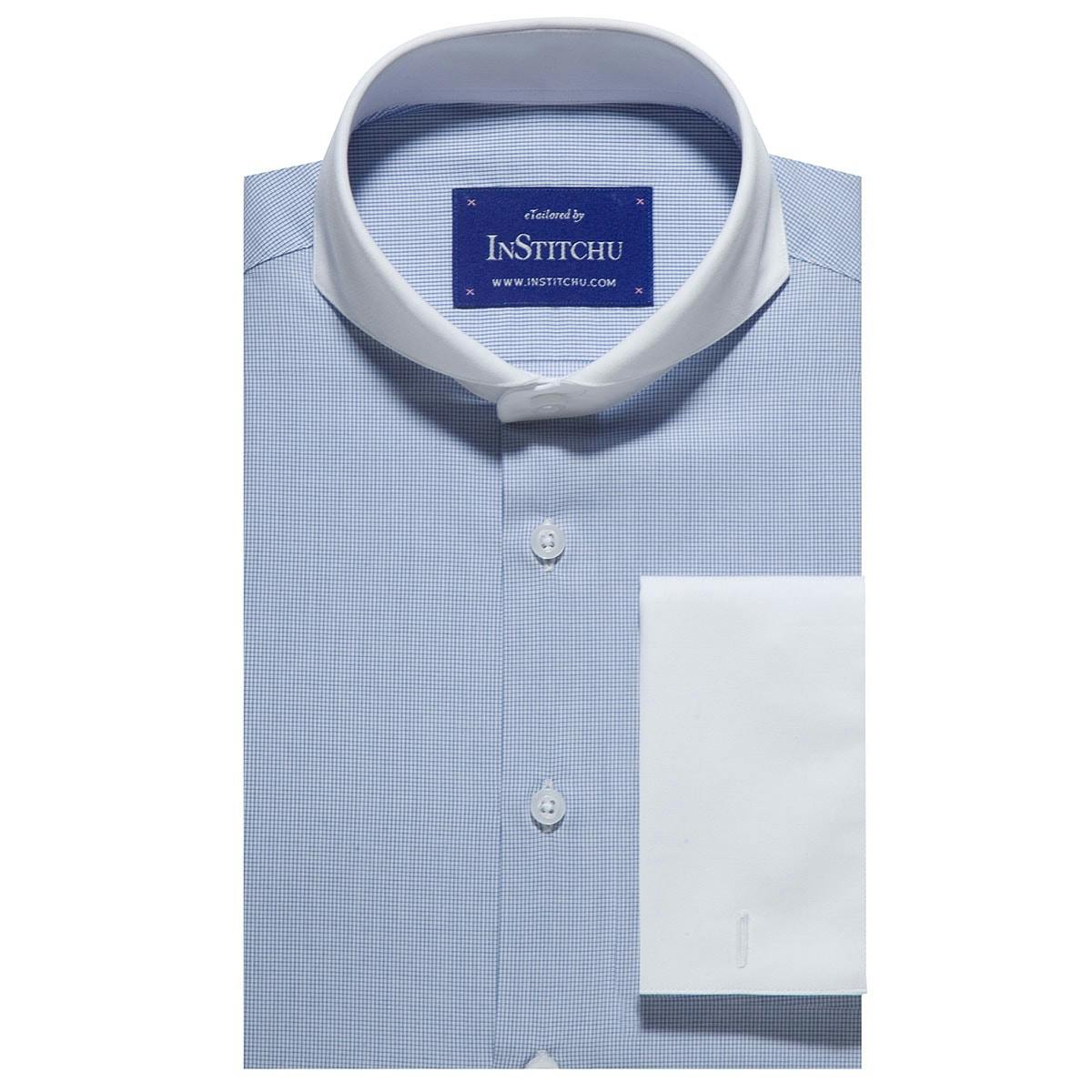 The Tahiti Blue Check Shirt with Contrast Collar & Cuff