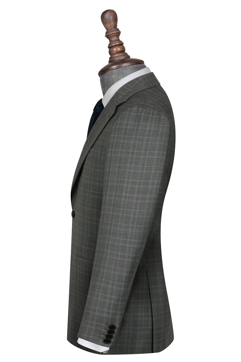 This grey and light blue check custom, tailored jacket is perfect for work or the weekend. This jacket is crafted from Woolmark certified 100% Australian Merino wool that is from the Italian milled Vitale Barberis Canonico collection, and is featured here with a single breasted, two button closure, notch lapels and patch pockets. This jacket is completely customisable and can be made to your measurements.