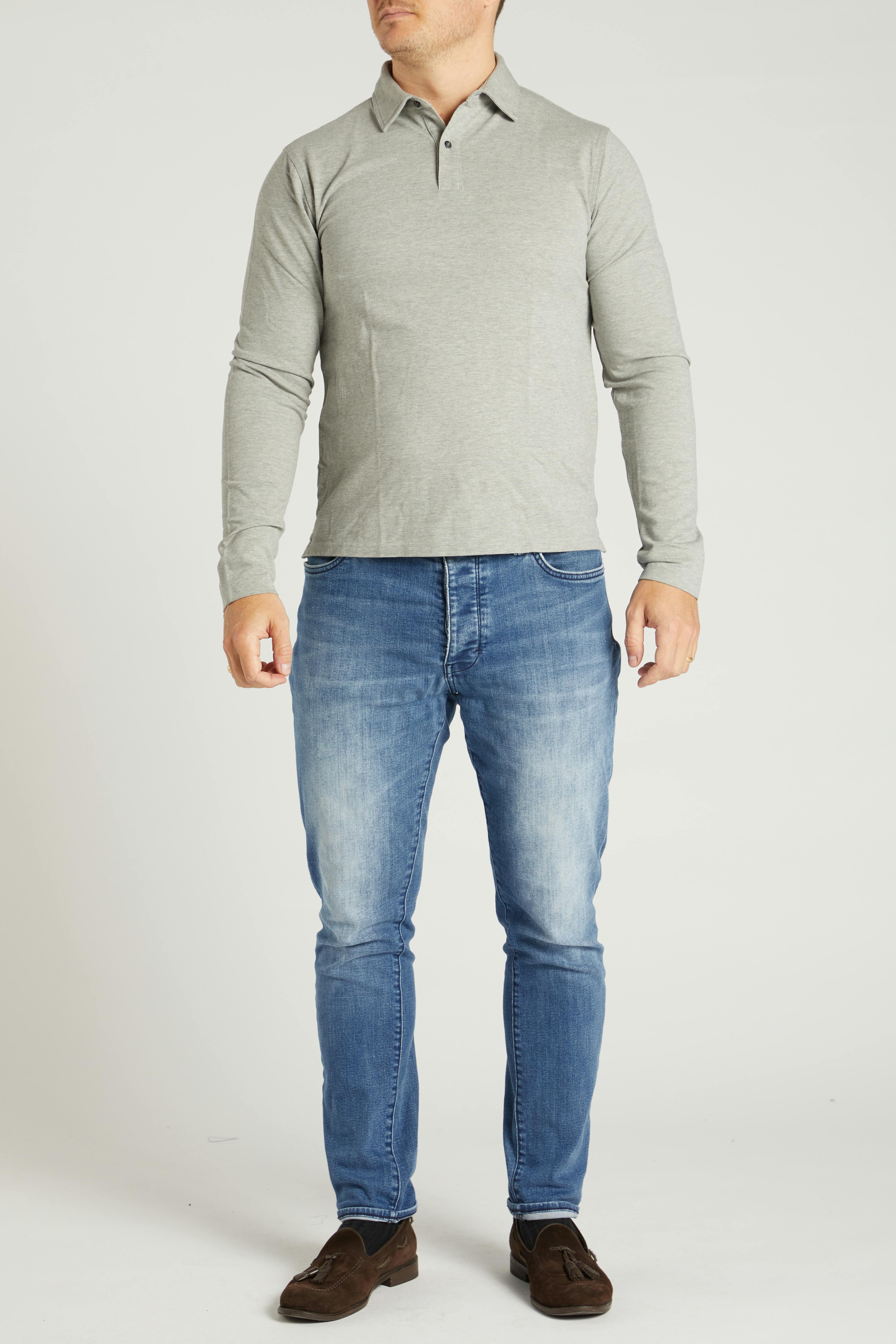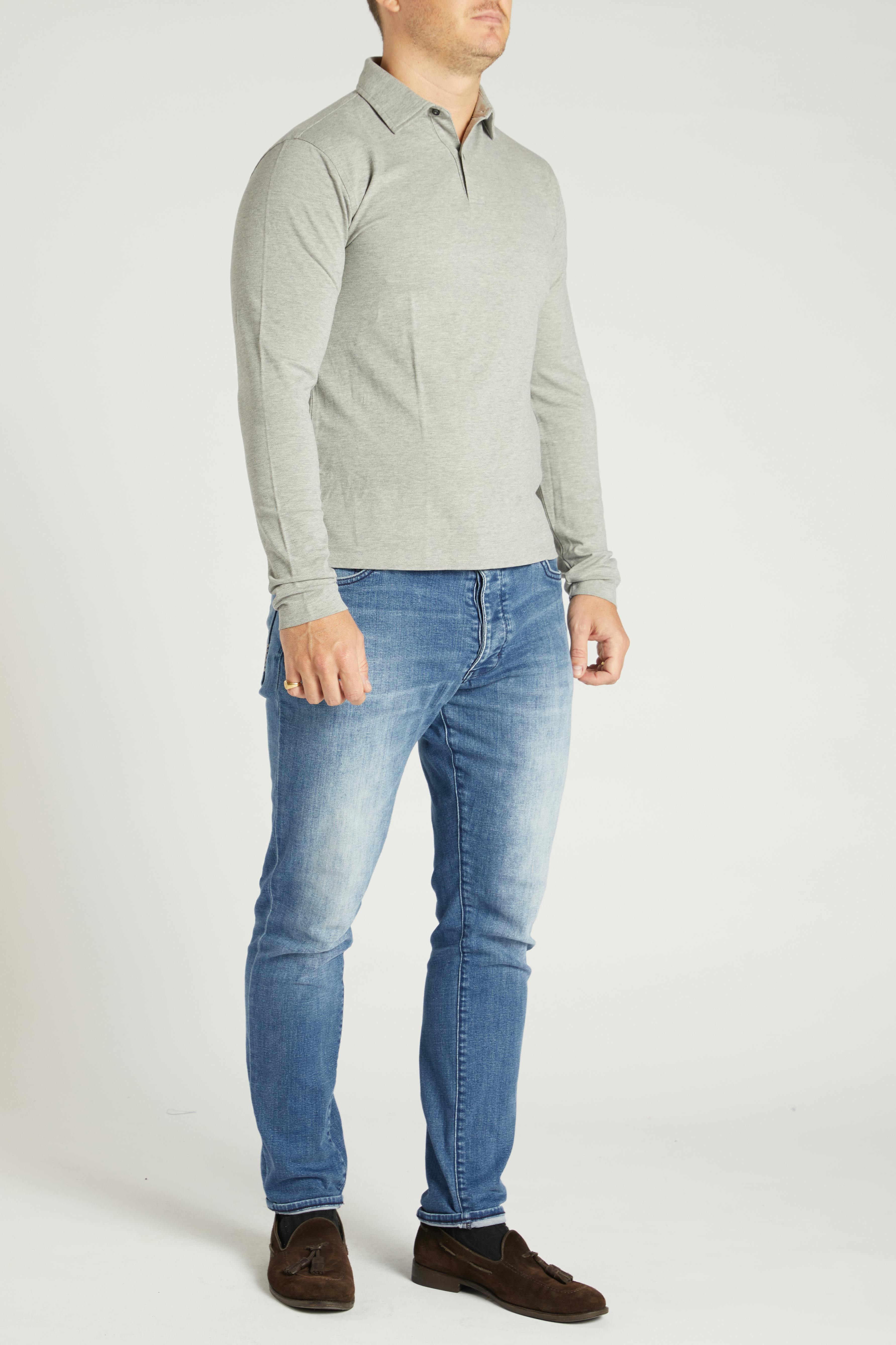 Soft, sophisticated and full of warm smart/casual charm, this grey soft cotton long sleeve polo is a staple garment for all seasons and tastes. Wear over jeans/chinos and boots or loafers, or dress down your formal tailoring by pairing with a textured wool suit for a European riff on contemporary style.