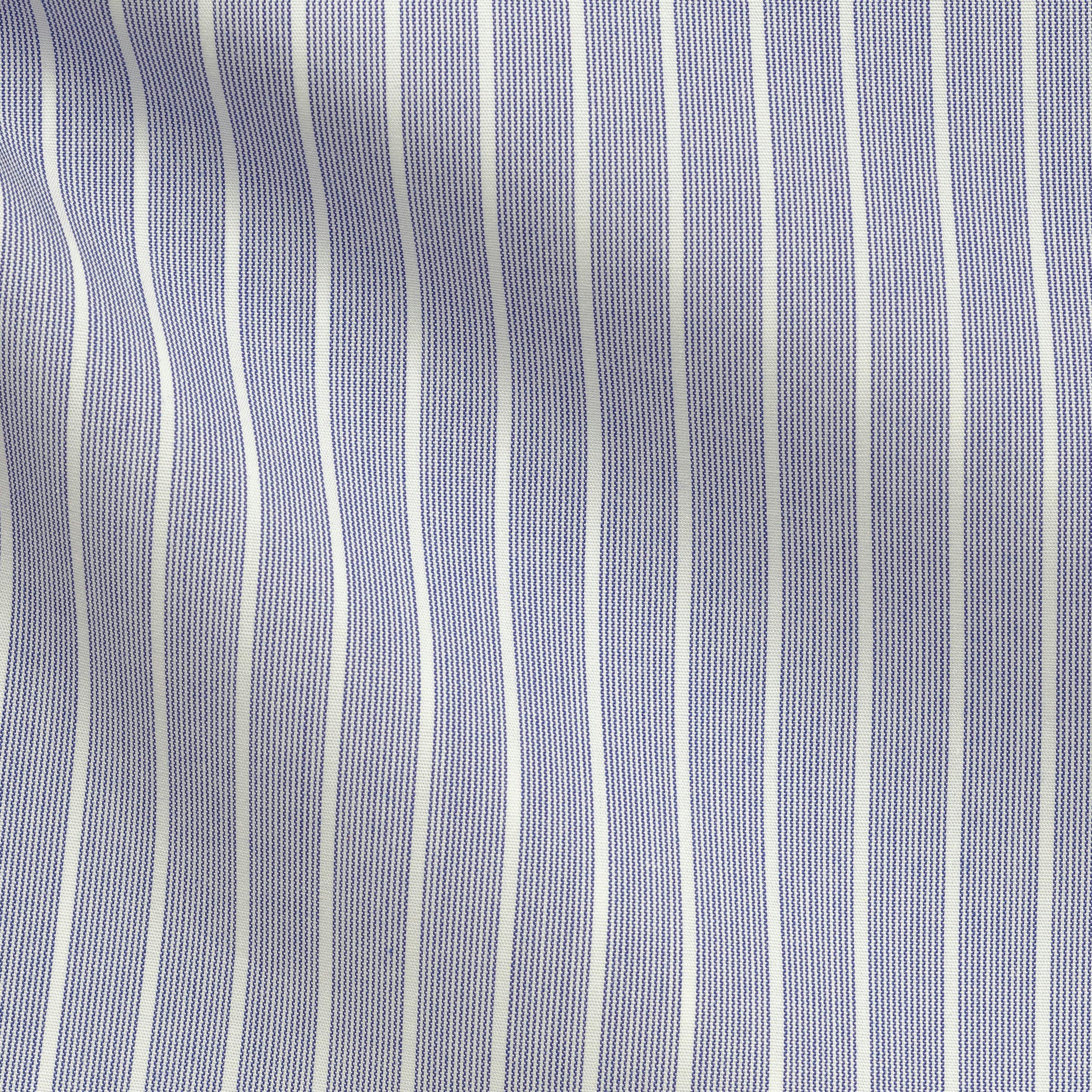 This vibrant long sleeve shirt with a bold navy and white stripe is a great statement garment for work or occasional wear. Crafted from an easy-to-iron 100% cotton, this is a year-round shirt with plenty to say, while still showing classic sensibility for corporate workplaces. Customise the details and take comfort in made-to-measure fit.