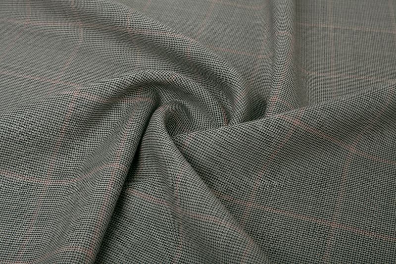Super 110s light grey suit with a faint red windowpane running over the fabric.
