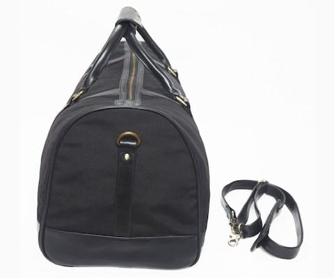-Waterproof canvas-100% full grain cow leather straps and base-Full brass hardware-Handmade in Bali Dimensions:Height 30cm, width 25cm, length 60cm one zippered+ 2 open internal pockets