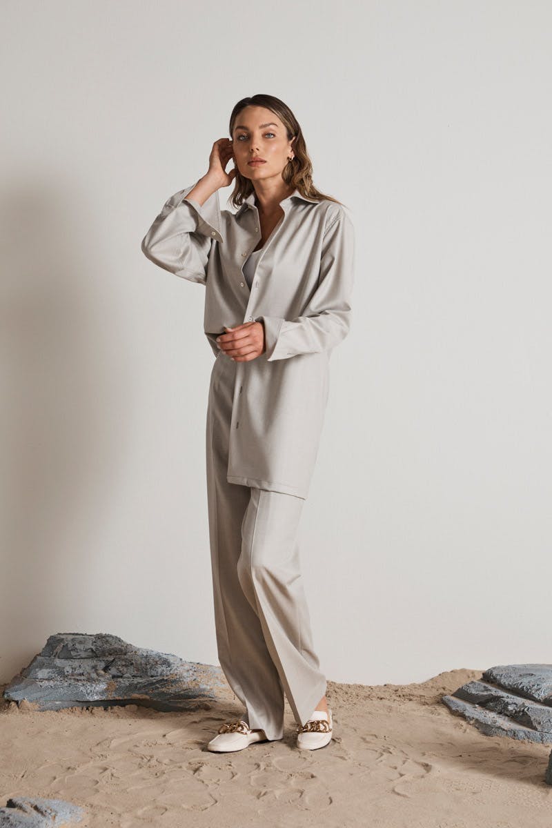Fabric: Light beige Italian made flannel in 100% Australian Merino Wool Features: Custom Fit, shell buttons Wear to/with: matching jacket and a blouse for a corporate look All InStitchu garments are customised to your taste and needs, so you can choose from thousands of fabrics and design options, as well as made-to-measure and covered by our Perfect Fit Guarantee.